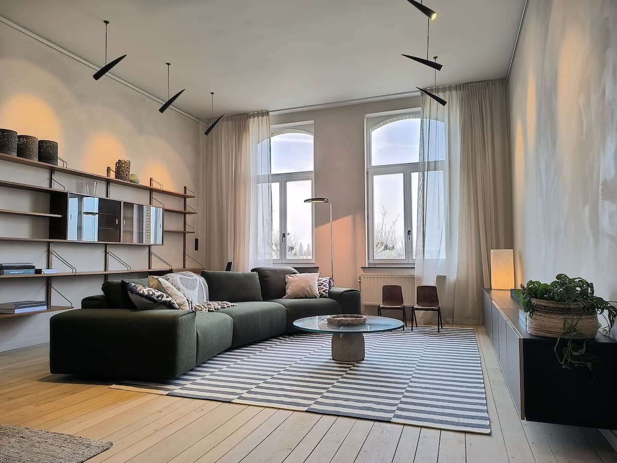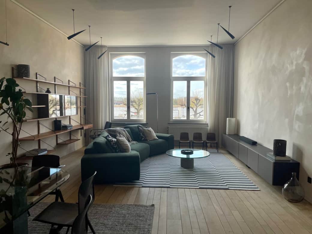 A stunning river view apartment that's within stone-throwing distances away from some of the best spots in Antwerp. Behind us is the antique street Kloosterstraat. Take a stroll around the old harbour and check out the 360 view at MAS museum, or make up your mind as you go, or just hang about, have a coffee by the river, and watch the best sunsets in town.